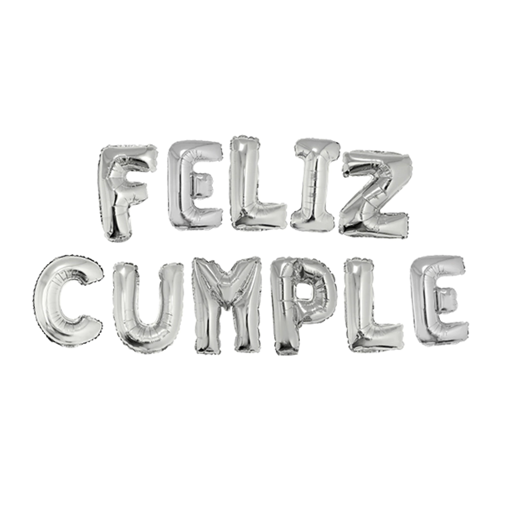 Globos tipo Foil en 14" Frase: "Feliz Cumple" Marca: Ovni Color: Plateado