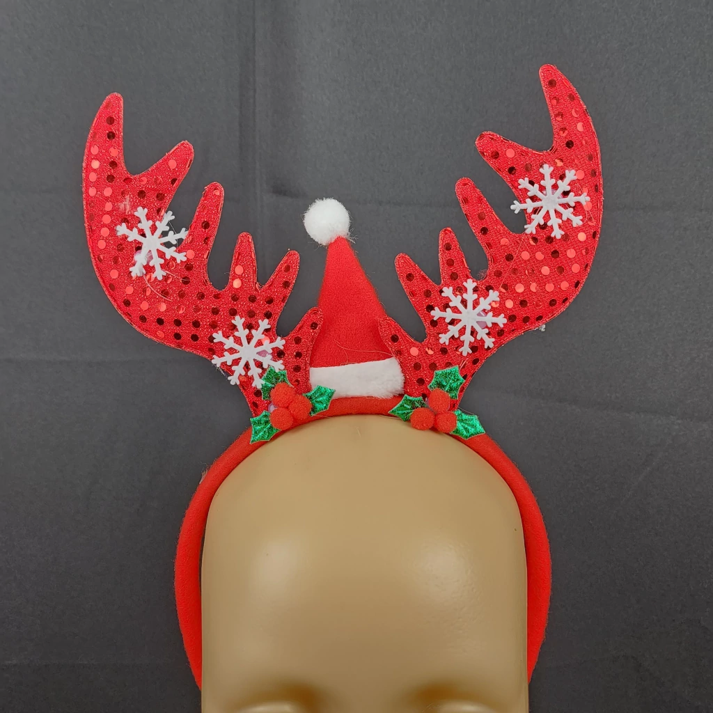 Vincha Navideña motivo Reno Rojo con Gorrito